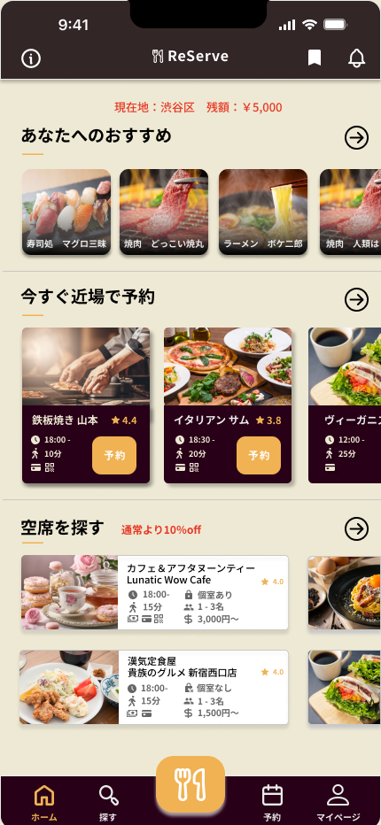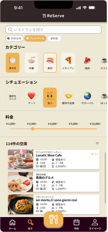 ユーザーの好みに合わせたレストランとのめぐりあわせや