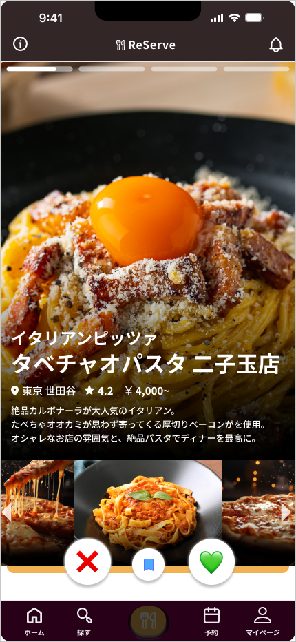 飲食店探しの悩みを解決するためのマッチング×コミュニティサービスです。
